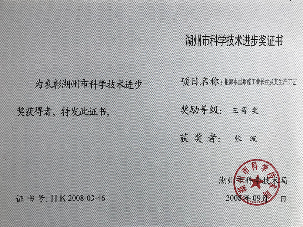 2008湖州市科技進步獎三等獎-張波