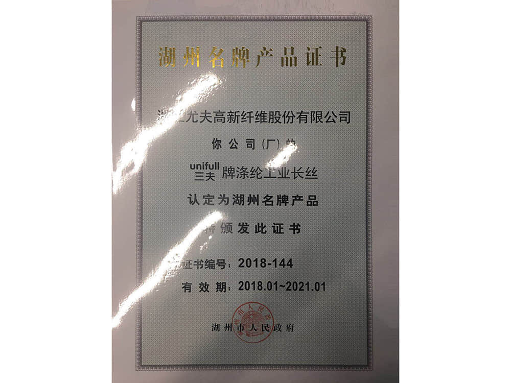 湖州名牌產品證書2018