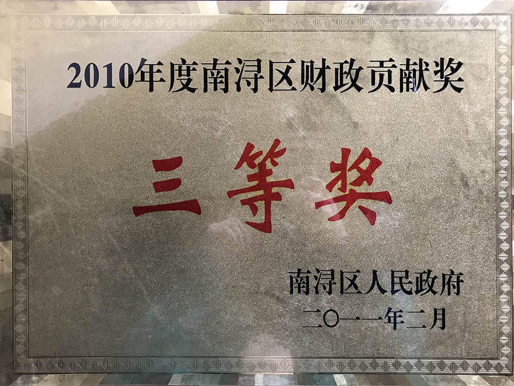 2010年度南潯區財政貢獻獎三等獎